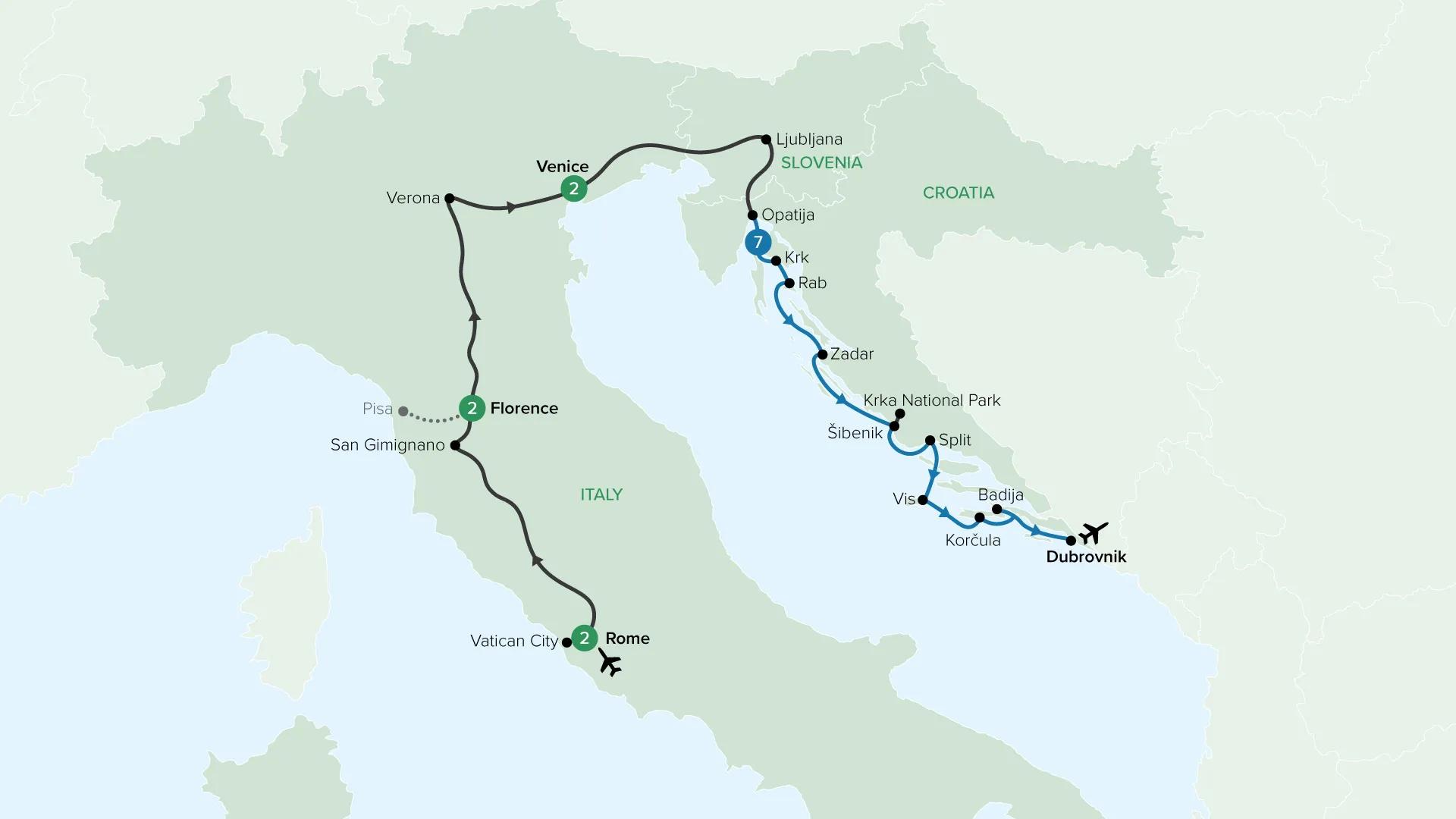 After breakfast, travel via Slovenia’s eccentric capital, Ljubljana, to Opatija to board your ship and settle in for an amazing seven-night Adriatic cruise.