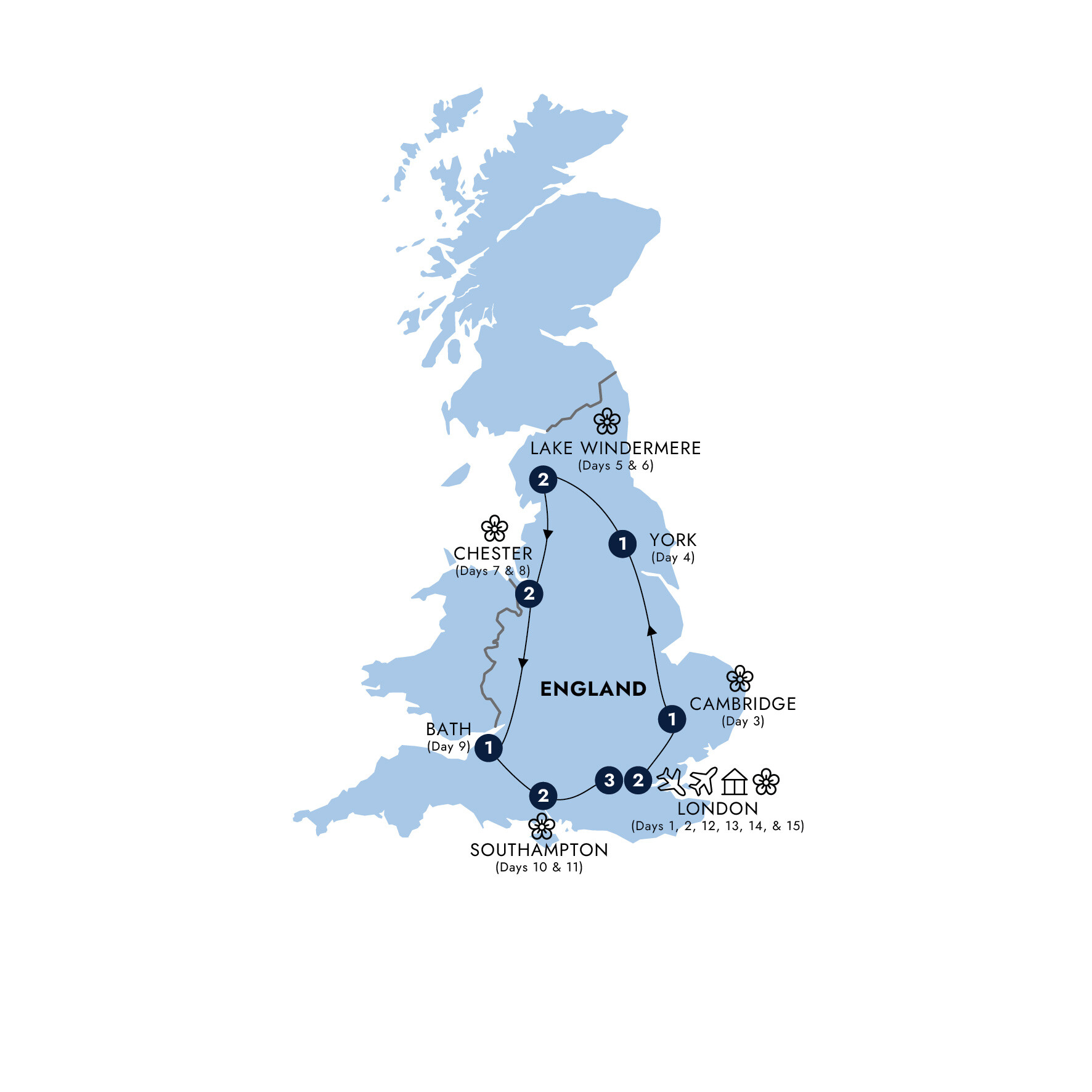 Take a once in a lifetime trip across Britain, hobnobbing with London’s high society at the Chelsea Flower Show and promenading through the RHS Bridgewater Gardens. This grand three-week journey showcases the vast Victorian Greenhouses of the Royal Botanical Society at Kew, the exotic floral beds of Bodnant Gardens and the interlaced lakes and colorful blooms of Leonardslee. From the shores of England’s Lake District to Queen Victoria’s retreat on the Isle of Wight, these horticultural highlights are a joy to behold.Itinerary