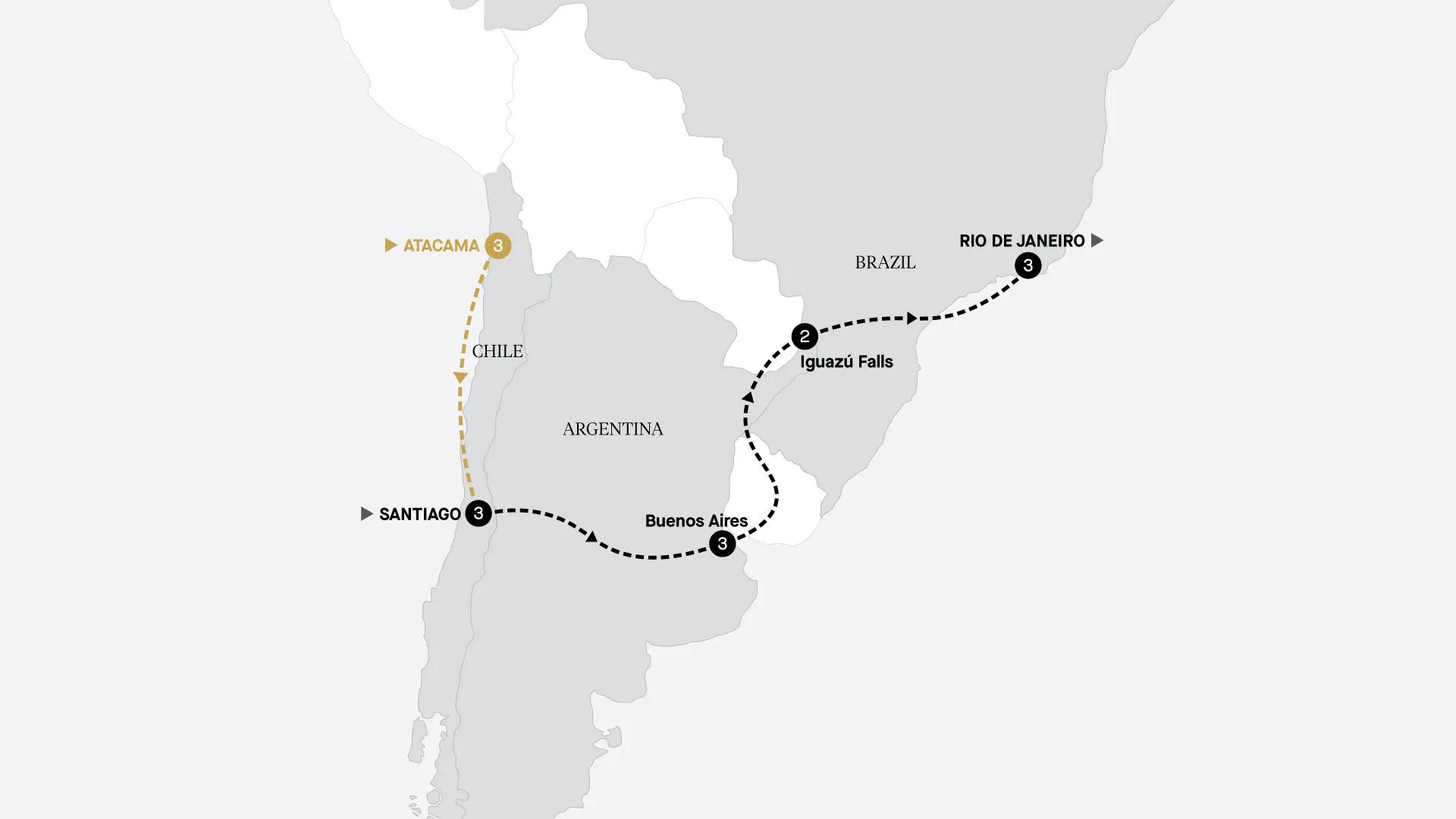 Discover the highlights of Chile, Argentina, and Brazil. Experience Santiago’s vibrancy, enjoy a tango show in Buenos Aires, and visit the stunning Iguazú Falls with a stay at Gran Meliá Iguazú. End your journey in Rio de Janeiro with time to explore at your own pace.