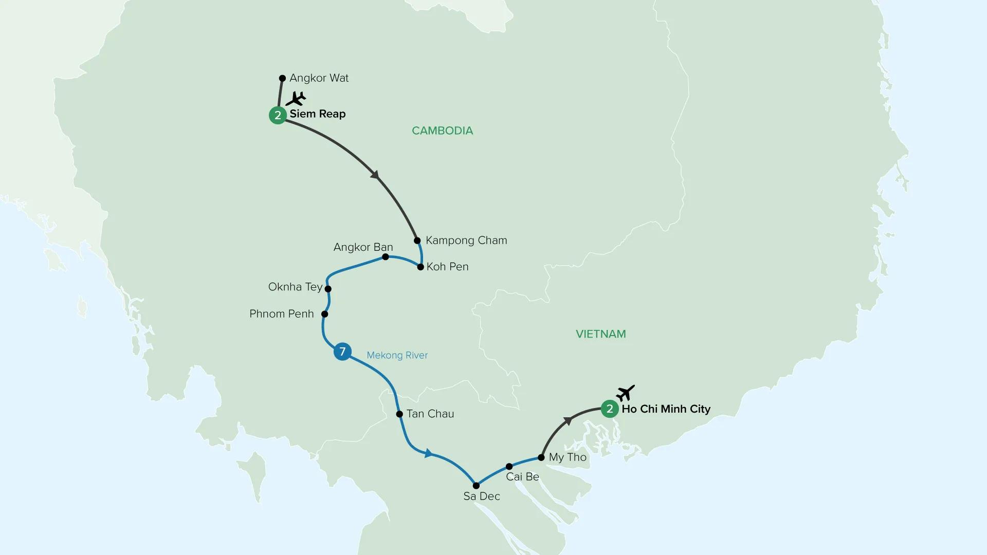 Immerse yourself in local life and culture as you embark on a seven-night cruise along the Mekong River, discovering the remote villages that line its banks. This journey is bookended by two-night stays in Siem Reap and Ho Chi Minh City, offering the chance to witness sunrise at Angkor Wat and explore the Cu Chi tunnels.