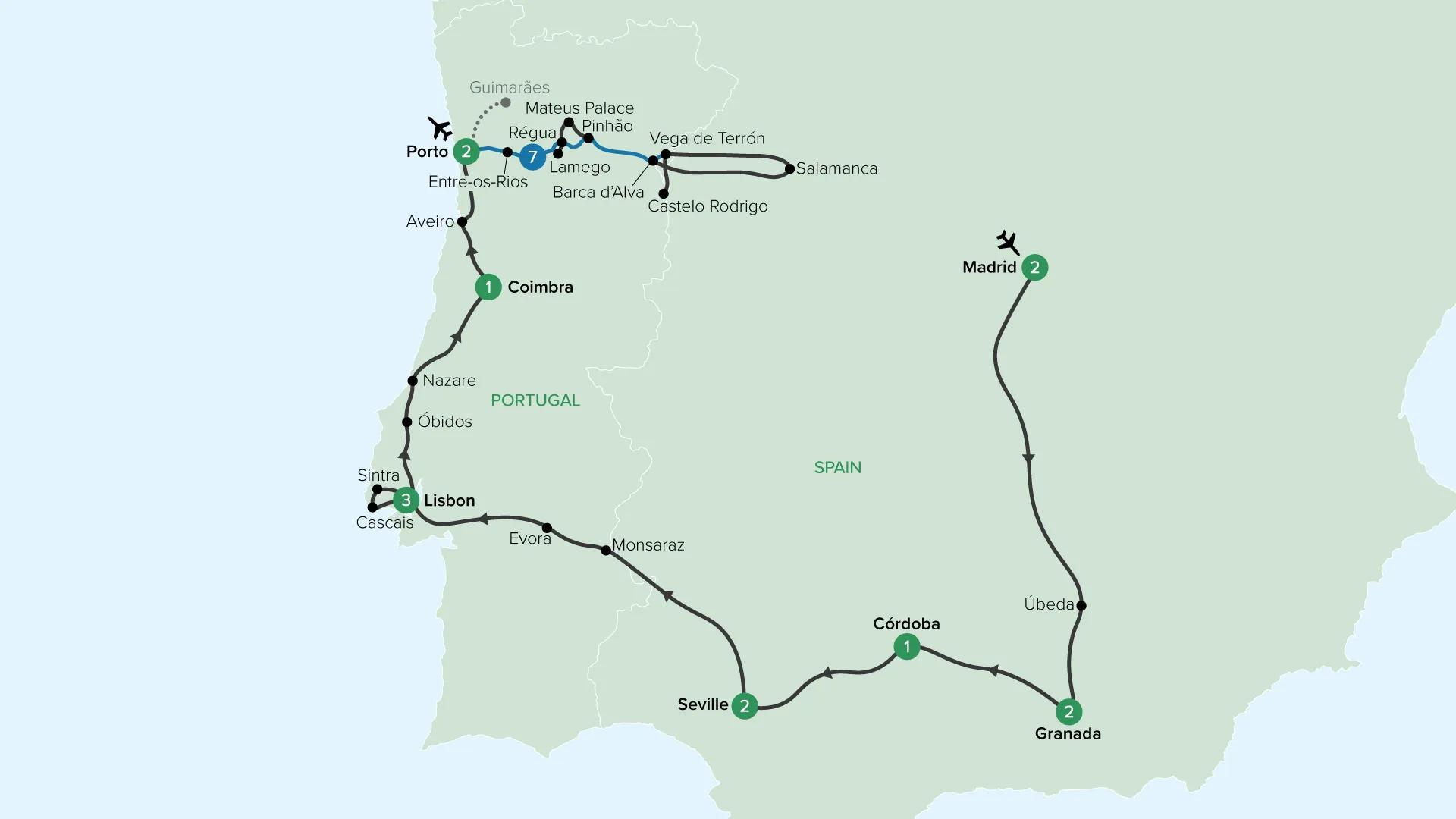 Embark on a 21-day journey through Spain and Portugal, travelling in a small group with no more than 24 guests on your Land Tour. Explore vibrant cities, stunning landscapes and rich cultural heritage before boarding your Douro River cruise. Sail past picturesque vineyards and historic towns, then continue discovering the sights and flavours of both countries along the way.