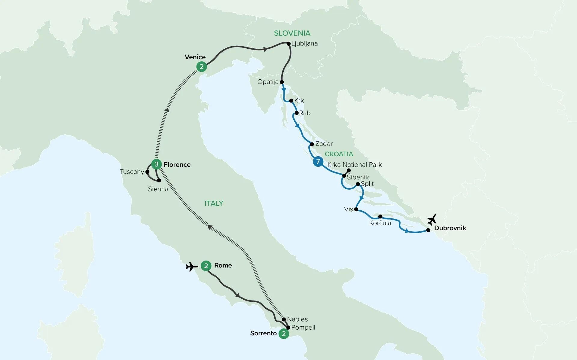 Embark on a 17-day journey from Rome to Dubrovnik, blending Italy’s rich flavours with Adriatic charm. Explore iconic cities, coastal villages, and cultural treasures. Enjoy boutique stays, authentic cuisine, and a scenic cruise along the Adriatic coast. From Roman ruins to Croatian shores, this curated experience offers indulgence, discovery, and unforgettable Mediterranean beauty.Itinerary