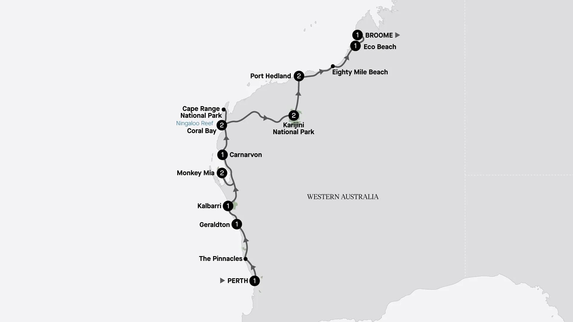 Set off on a 15-day Small Group Tour with a maximum of just 22 guests, exploring the iconic sites and hidden gems of Western Australia. From the wild dolphins of Monkey Mia to the stunning landscapes of Karijini National Park, and the unspoilt reef of Coral Bay, this region is filled with surprises.