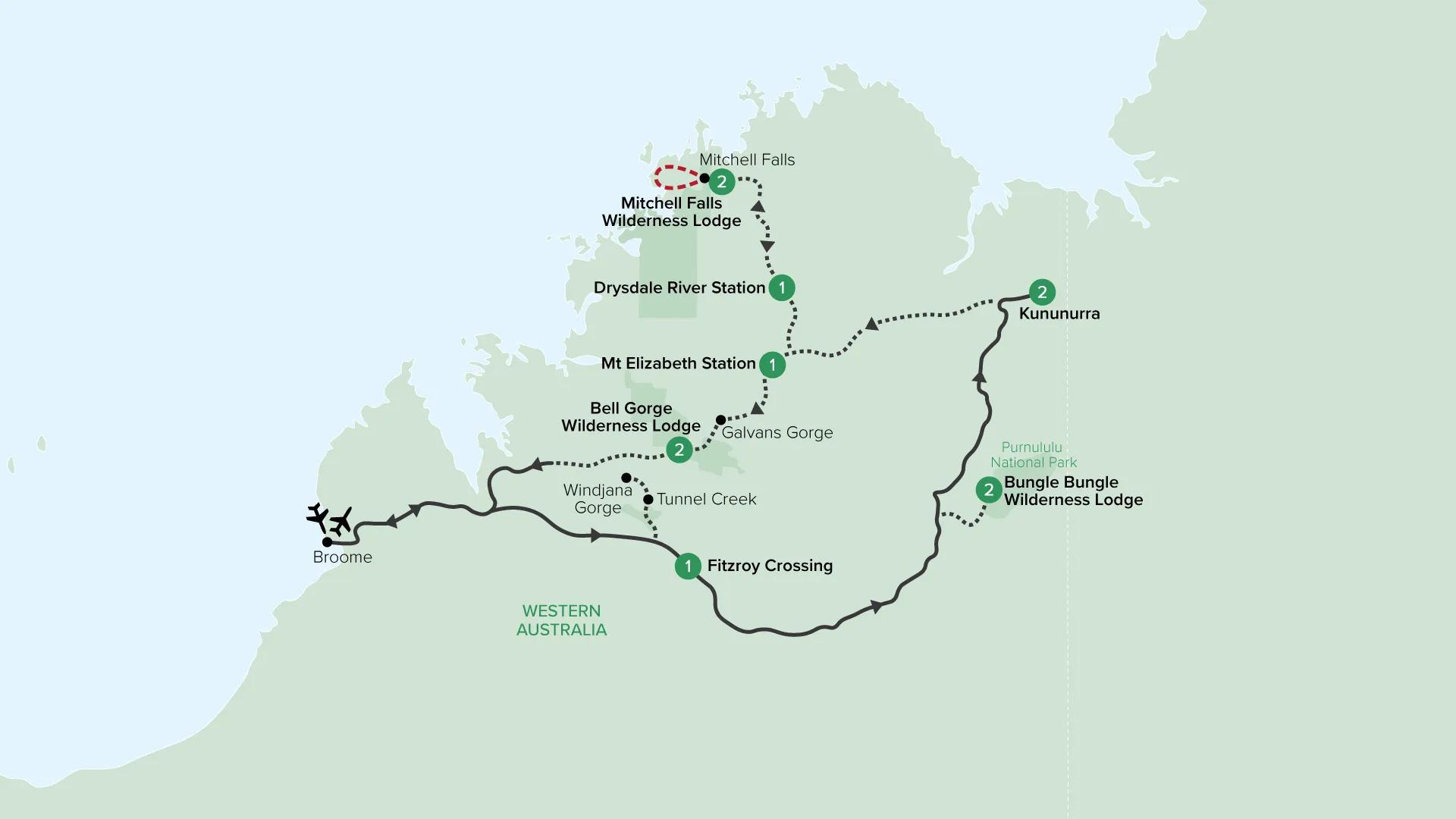 Explore the Kimberley in depth, discovering stunning waterfalls and gorges, and encountering ancient rock art on this Small Group Tour with a maximum of just 22 guests. Enjoy a stay in three remote Wilderness Lodges at the Bungle Bungle Range, Mitchell Falls and Bell Gorge.